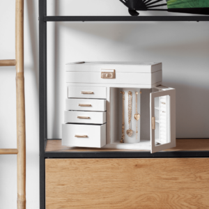 Naše kućne kutije za nakit osmišljene su da vašim dragocenostima pruže sigurno i prefinjeno mesto. Pažljivo birani materijali i moderan dizajn čine ih savršenim dodatkom svake spavaće sobe ili garderobera.