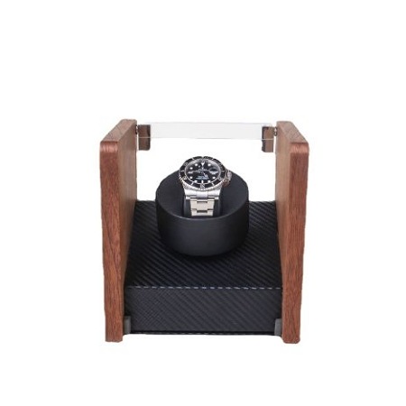 Dve bočne stranice su od kvalitetnog drveta. Kvadratno postolje je crne boje, sa kombinacijom sjajnih i mat pruga. Pod malom je kosinom, radi boljeg ugla posmatranja ručnog sata. Pokretno kružno postolje je crne boje, a jastučić na koji se postavlja sat je podesiv, tako da se mogu staviti satovi različitih veličina. Rad je nečujan. Pored svrhe da istakne ručni sat, kutija ima još jednu, a to je da potpuno zaštiti sat od spoljašnjih oštećenja.