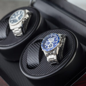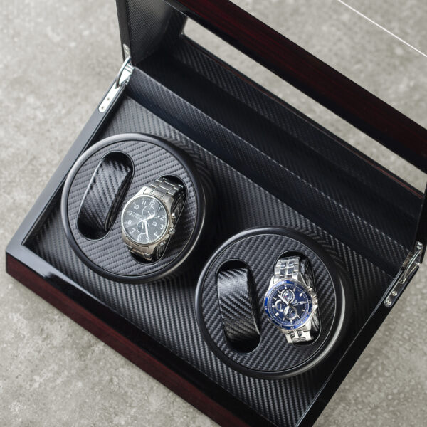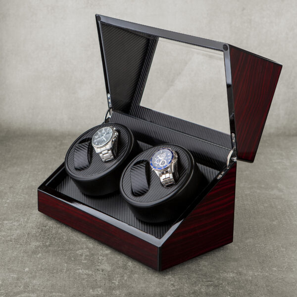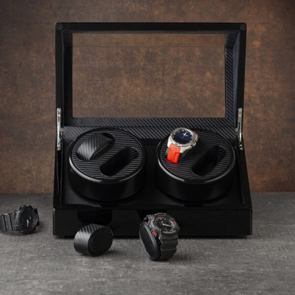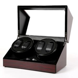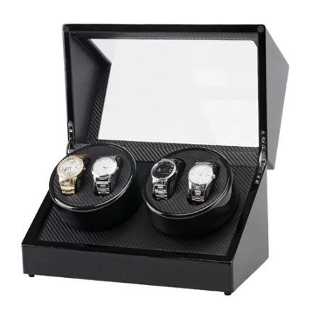 Ukupno 4 ih može stati u kutiju izrađenu od medijapana, sa dodatkom staklenog dela sa gornje i prednje strane. Unutrašnjost kutije je obložena svetlim i mekim materijalom, koji će sprečiti ogrebotine na satovima. Motori za navijanje satova sa automatskim mehanizmom su gotovo nečujni, ali potpuno efikasni u navijanju Vaših ljubimaca. Napajanje motora je moguće uz kabl. Ova elegantna kutija za satove može biti savršen poklon za kolekcionare, ili one koji žele to da postanu. Obradujte i jedne i druge kvalitetnim čuvarem ručnih satova.