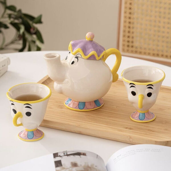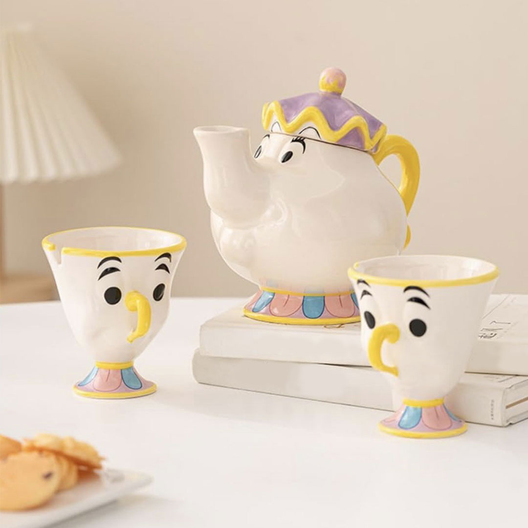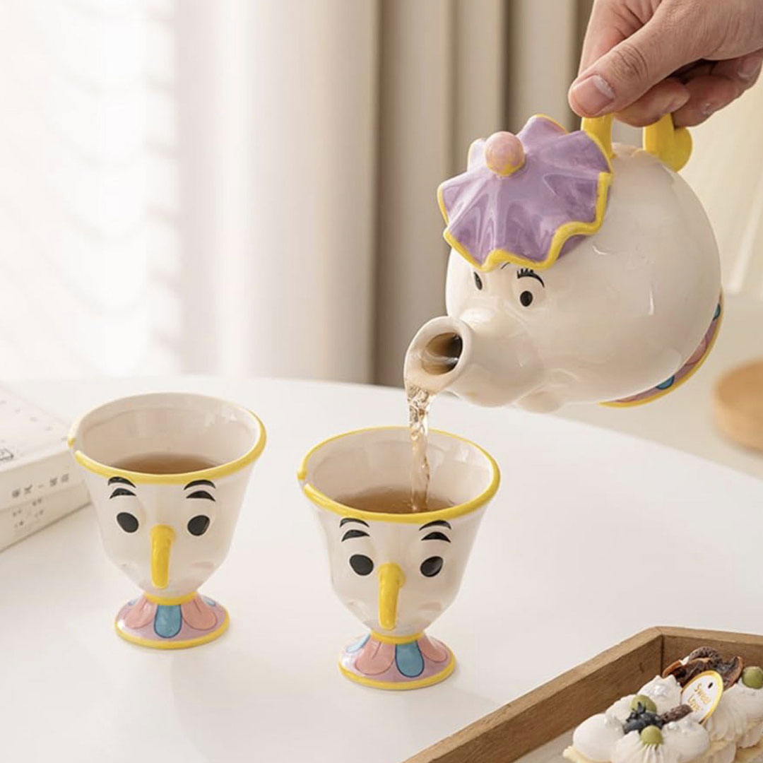 Čajnik i šočjice – Lepotica i zver unosi pravu bajku u tvoj dom. Ovaj prelepi keramički set inspirisan čuvenim likovima iz crtanog filma Lepotica i Zver, sa sobom donosi toplinu, nostalgiju i prepoznatljivu magiju iz detinjstva.