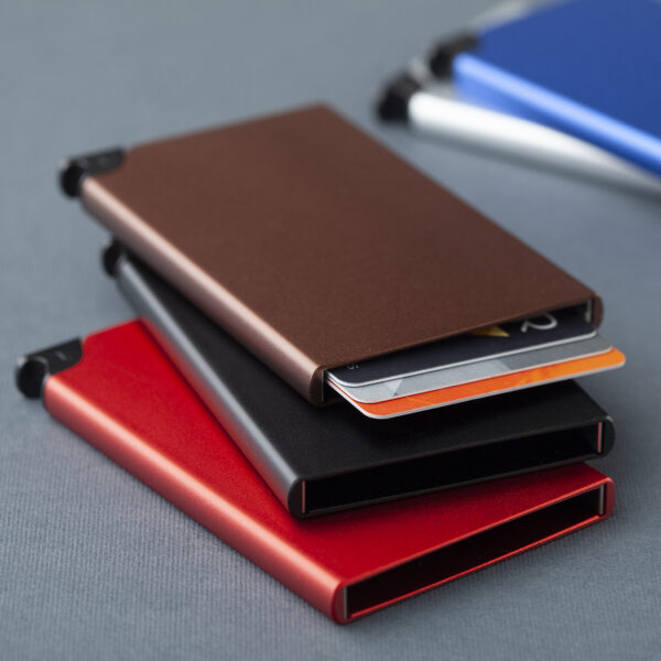 Iprotector je premijum futrola za kreditne kartice i dokumenta i organizator kartica. Izvucite karticu jednostavnim pokretom. Iprotector pruža vrhunsku lakoću korišćenja, dok elegantno aluminijumsko kućište štiti vaše kartice od savijanja, lomljenja i neželjene bežične komunikacije. Iprotector može da sadrži 6 kartica uključujući jednu embosiranu karticu ili može da sadrži 5 kartica, uključujući 3 embosirane. Za brz pristup, postavite kartice koje najviše koristite kao prvu i poslednju. Karticu koju postavite sa zadnje strane koristite za beskontaktno plaćanje ne vadeći je iz futrole.