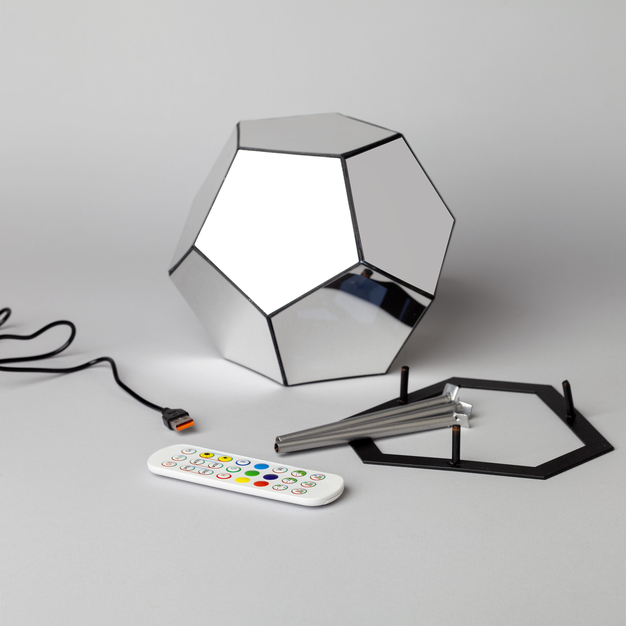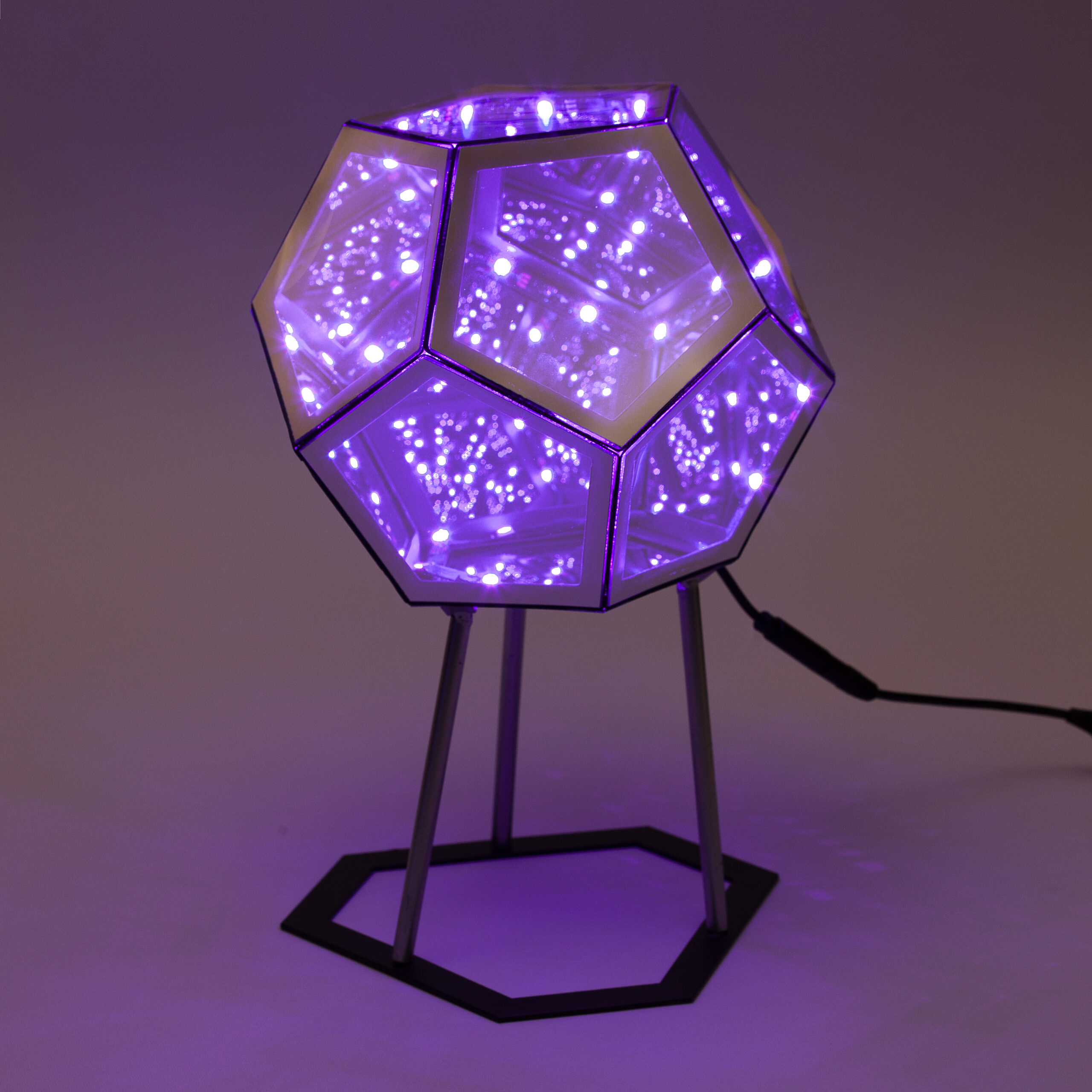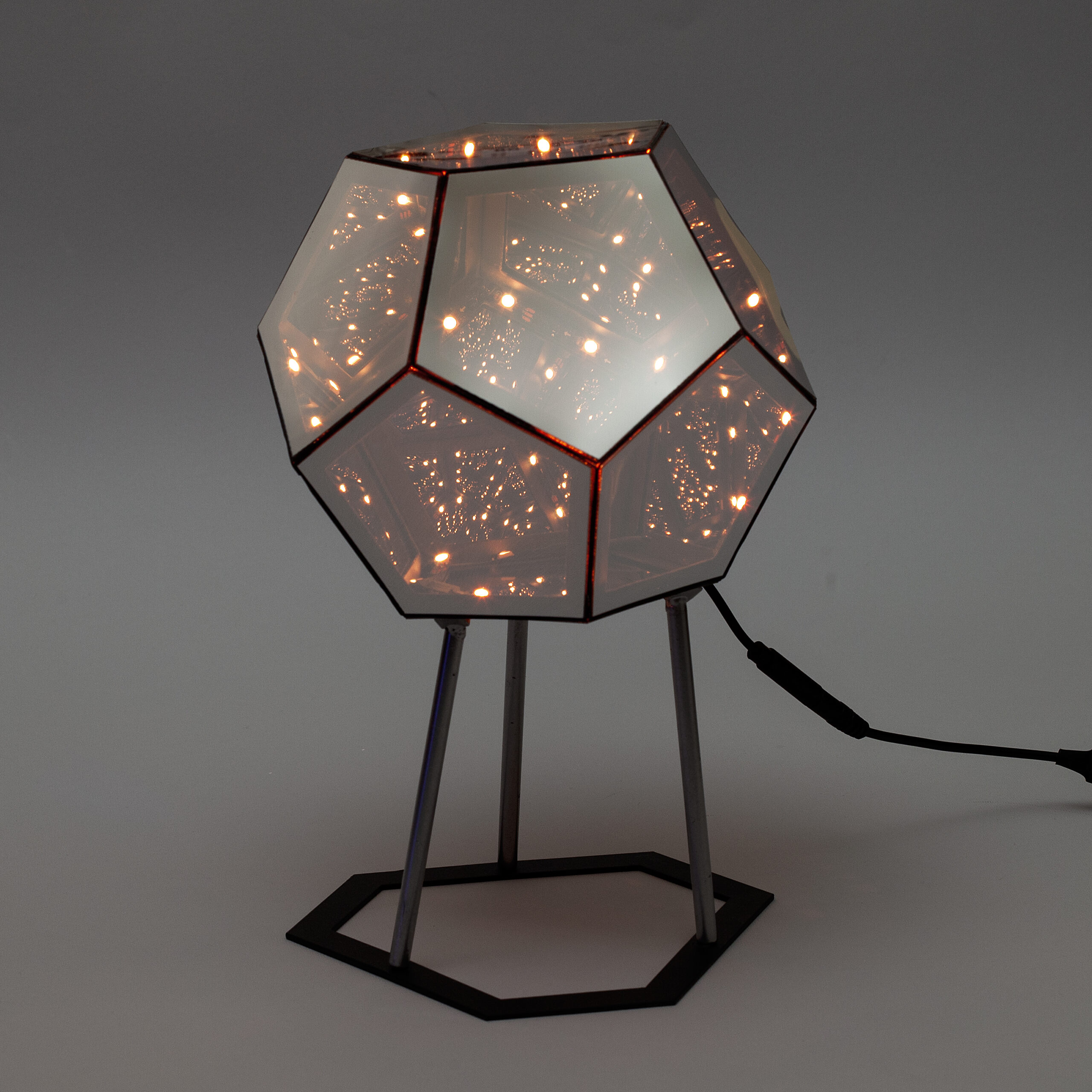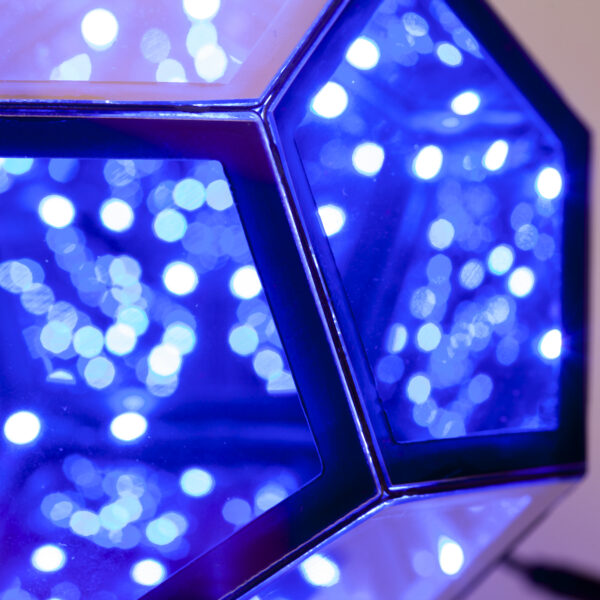 Lampa je sačinjena od dvanaest jednakih stranica, a njenu unutrašnjost ispunjava svetlost koja se na razne načine prelama i tako stvara poseban 3D doživljaj. Posmatrač ima osećaj kao da se upravo zagledao u beskrajan prostor bogat geometrijskim oblicima i bojama.