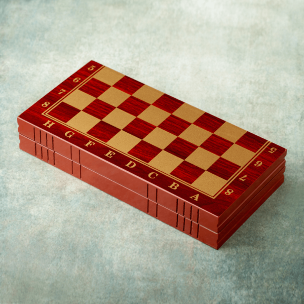 Drvena kutija crvene boje sa zlatnim detaljima na šahovskoj tabli i unutrašnjosti donosi vam tri klasične igre u jednom paketu: Bekgemon, šah i čekers. Savršen je izbor za sve ljubitelje društvenih igara, idealan je dodatak za svaki dom ili školu. Bilo da se okupljate s prijateljima ili porodicom, ove igre će Vam pružiti sate zabave i vežbe za moždane vijuge. 🎲💡