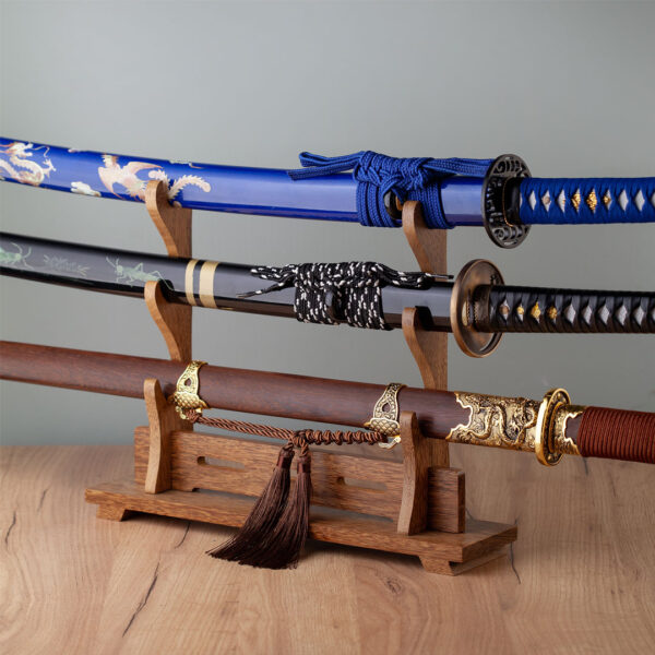 Stalak je stabilan i praktičan, savršen za dekoraciju prostora i isticanje katana kao upečatljivih izložbenih komada.