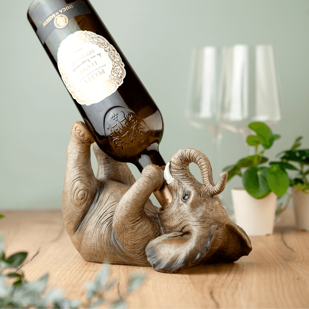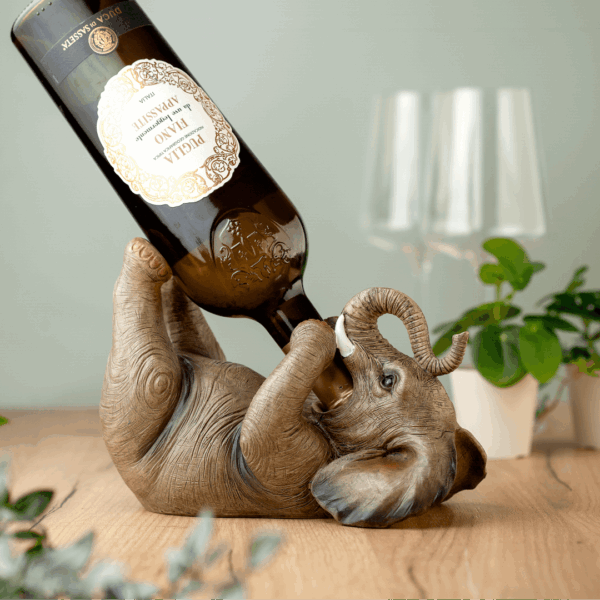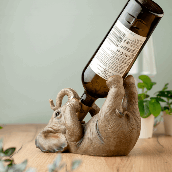 Dodajte umetnički dodir svom prostoru sa unikatnim držačem za vino u obliku slona. 🐘
