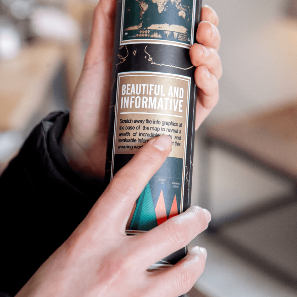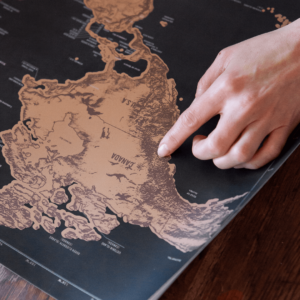 Za tebe ali i one kojima je ceo svet igralište, stvorena je ova dekorativna i edukativna mapa. Svaka zemlja koja je posećena, pored toga što je upamćena biće i obeležena na jedinstvenoj mapi sveta. Njen pun naziv glasi Greb greb mapa – standard i nalazi se na Ekspediciji. Korišćenje je jednostavno. Pronađi zid koji želiš da ukrasiš uspomenama sa putovanja. Okači mapu i nakon putovanja zagrebi po površini, baš tamo gde si nedavno bio/la. Otkriće se vesela boja i naziv države u beloj boji.