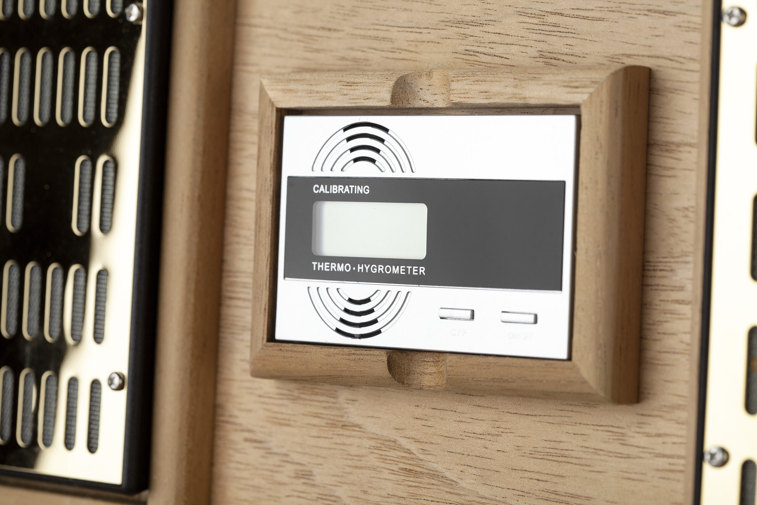 - U sklopu humiora je digitalni merač vlažnosti vazduha .