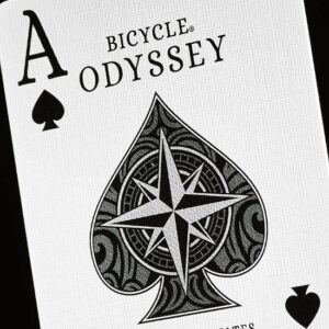 Bicycle Odyssey je luksuzni špil karata koji vas vodi na avanturističko putovanje kroz vreme i prostor, savršen za kolekcionare, entuzijaste i ljubitelje kartaških igara. Dizajn špila započinje sa *court* kartama, inspirisanim „Trophy Whist No. 39“ špilom iz 1895. godine, sa prelepim plavičastim tonovima i tradicionalnim crnim i crvenim simbolima. 🎴