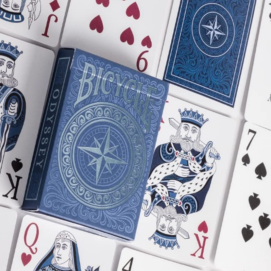 Bicycle Odyssey je špil karata sa prelepim plavičastim dizajnom inspirisanim morem i kopnom, savršen za kolekcionare i ljubitelje kartaških igara.