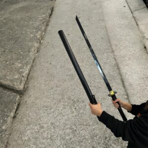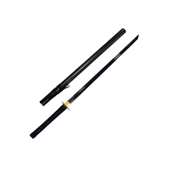 Oštrica je izrađena u crnoj boji, dok je celokupan dizajn upotpunjen zlatnim detaljima koji daju luksuzan i autentičan izgled. Kombinacija crne i zlatne boje čini ovu katanu veoma atraktivnim dekorativnim predmetom koji se lako uklapa u različite enterijere – od modernih prostorija do kolekcionarskih vitrini.