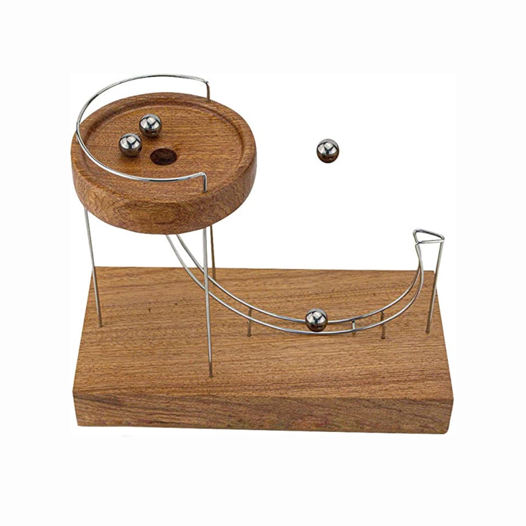 Kinetička zabava, za neograničen period! Izrađena od drveta, ova fascinantna samo-forsirajuća naprava će Vas ostaviti bez daha. Sve što trebate da uradite je da pustite kliker niz rupu, koga će sama inercija voditi konstantno! Idealna za sve ljubitelje gravitacije, a može da posluži kao neki praktičan, nesvakidašnji i zanimljiv ukras.