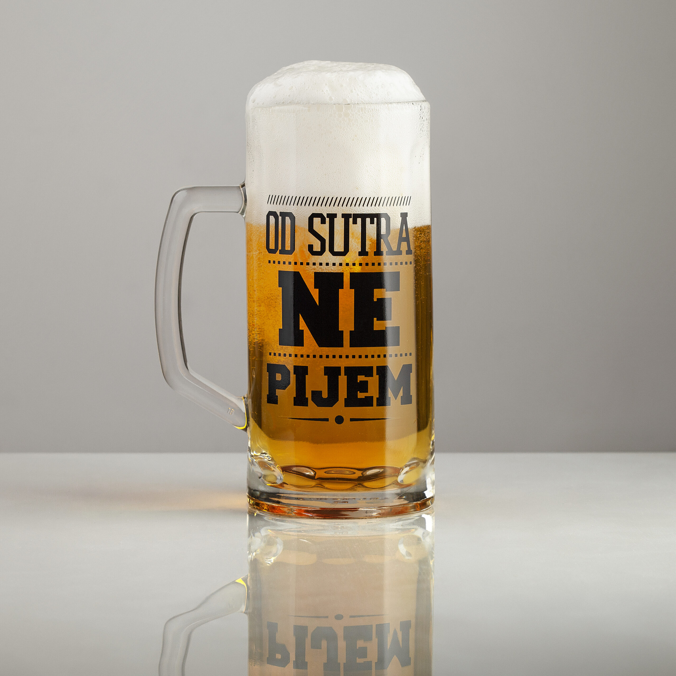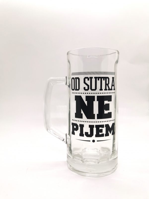 Krigla sa natpisom „Od sutra ne pijem“ savršena za kućne barove, rođendane, momačke večeri ili bilo koju drugu priliku.