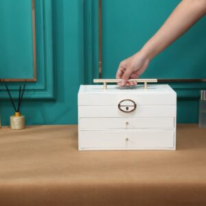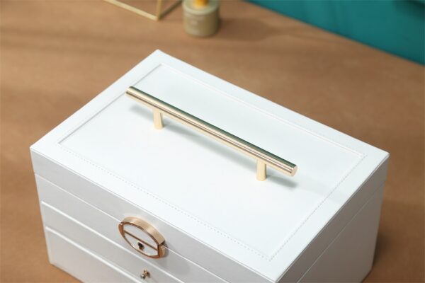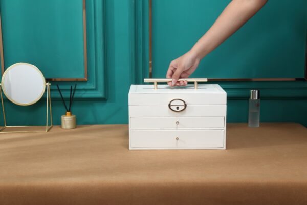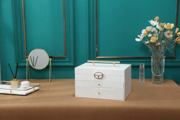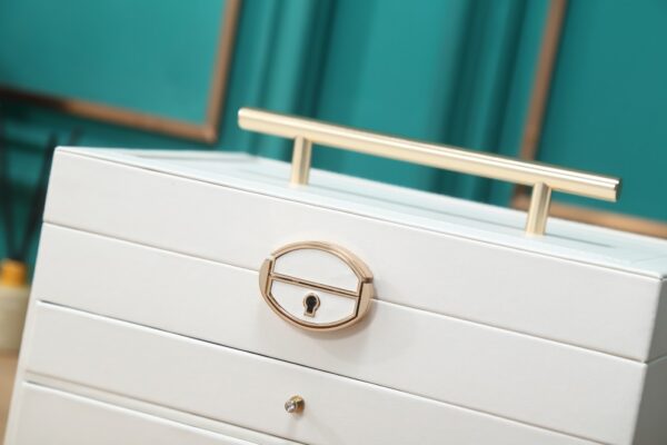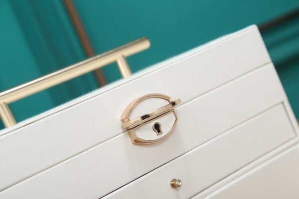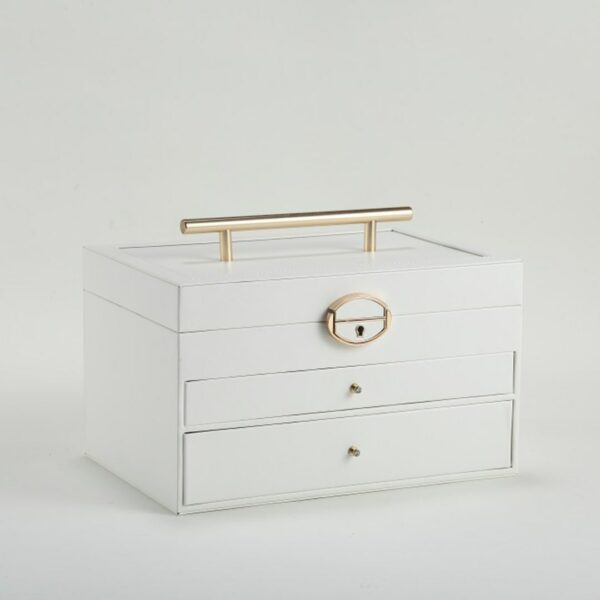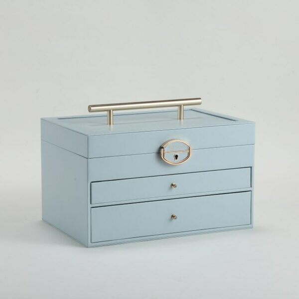 Samo za one kojima je nakit „na sto strana“ i opet ga nikad dosta, Ekspedicija predstavlja kutiju za nakit Fantasy. Ime je zaslužila na osnovu mnogih osobina koje poseduje, a među kojima su ogroman prostor za skladištenje nakita, prefinjen izgled, kao i mogućnost zaključavanja. Ova kutija zbog veličine možda ne štedi prostor, ali vreme svakako da! Sav nakit se konačno može naći na jednom mestu, bez obzira da li je sitan ili krupan. Tri nivoa kutije nude odličan razmeštaj za nakit svih vrsta, a deo ispod poklopca rezervisan je za ogledalo. Na mestima sa strane, gde se kutija otvara, to jest zatvara su metalni elementi u boji zlata, kao i na vrhu, gde je drška za lakše prenošenje. Gornji deo kutije, iznad fioka može se zaključati.