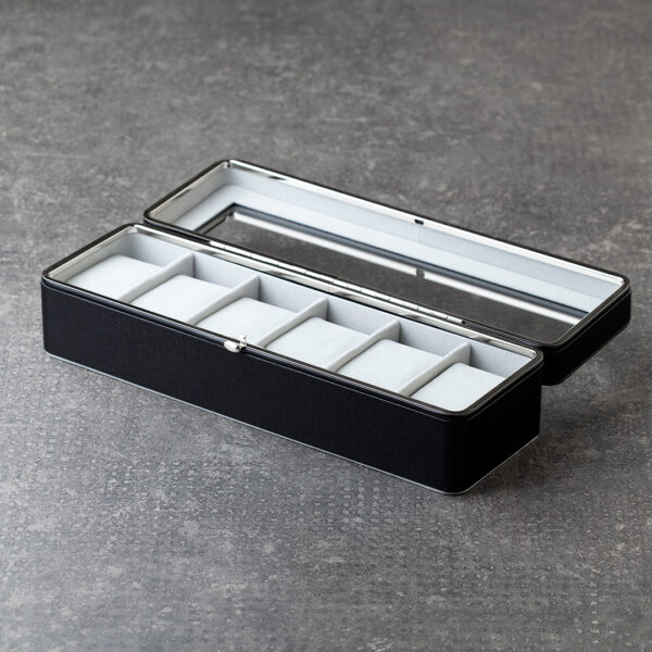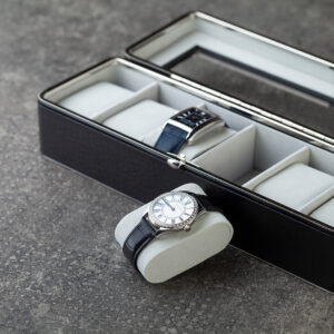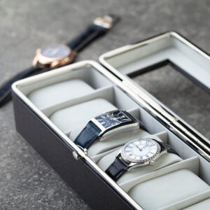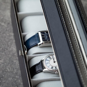 Unutrašnjost je obložena mekanim materijalom sa pojedinačnim jastučićima, osiguravajući da svaki sat bude sigurno i elegantno smešten. Idealan izbor za ljubitelje satova koji žele stilsku i pouzdanu organizaciju svojih satova.