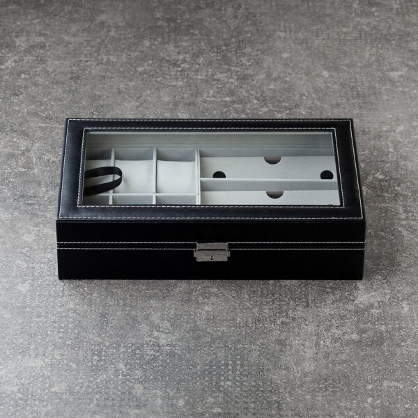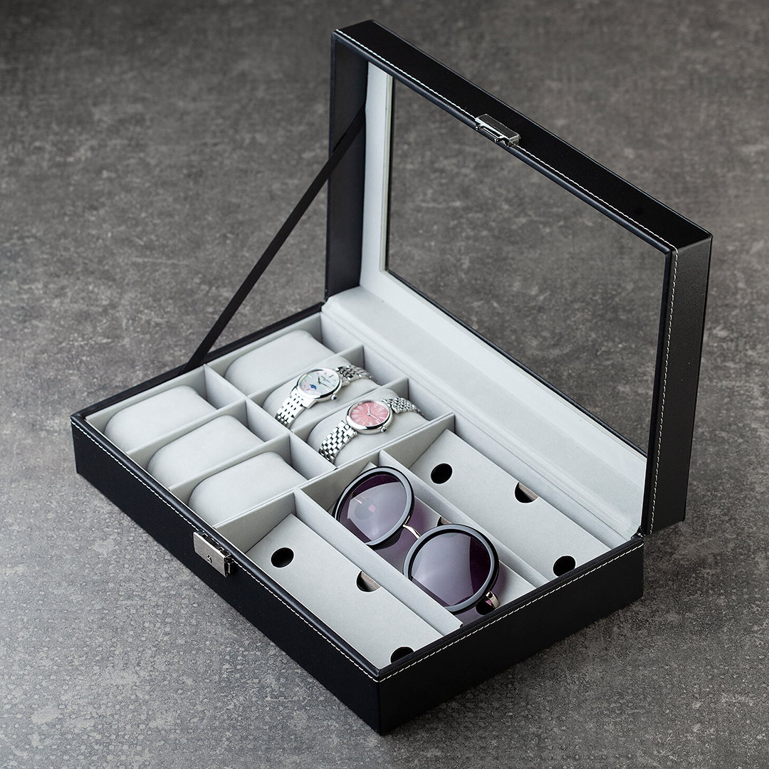 Kutija za satove + Naočare za sunce Budget predstavlja jednostavno i funkcionalno rešenje za uredno čuvanje satova i naočara, uz dobar odnos cene i kvaliteta.
