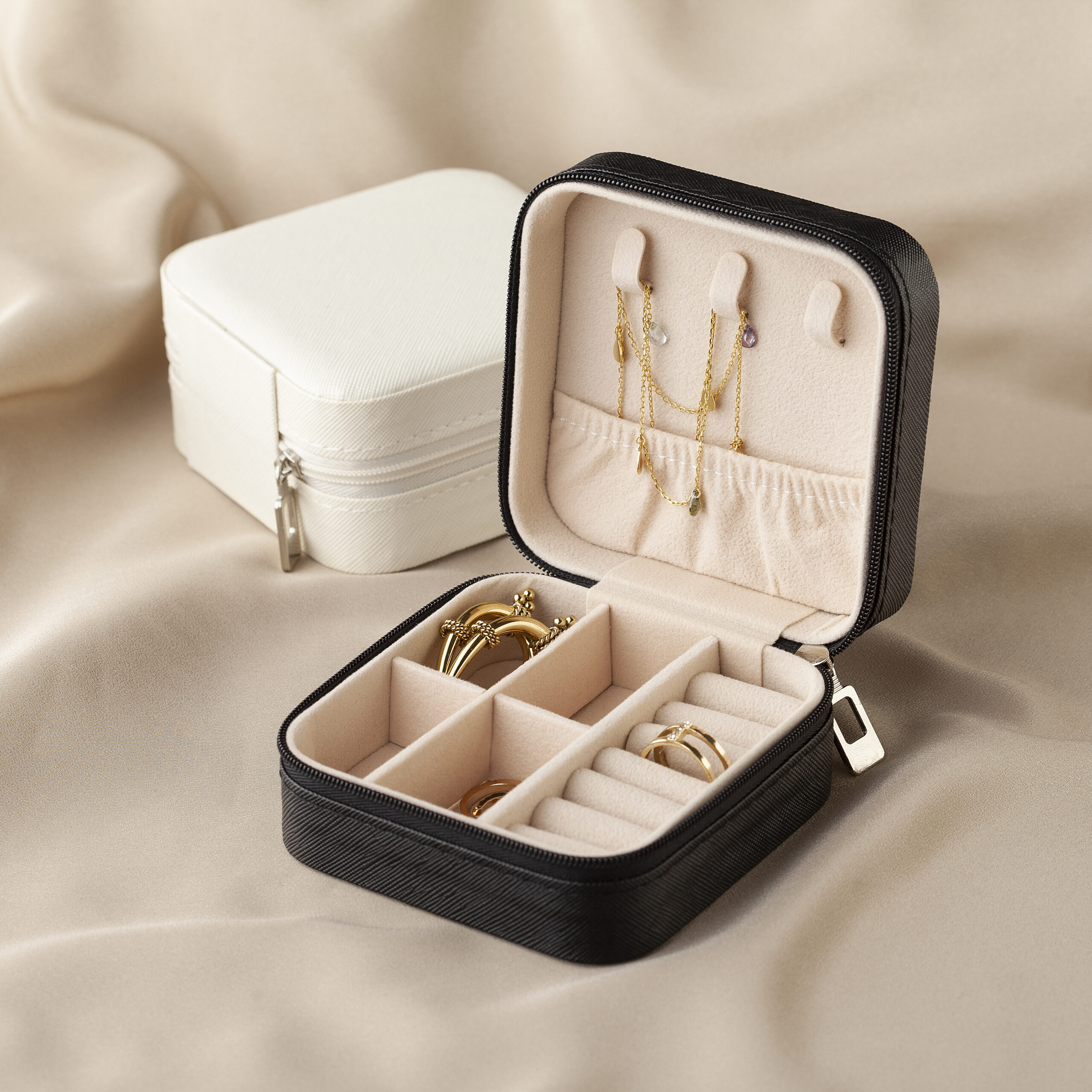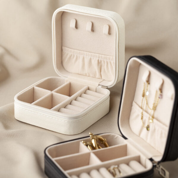 Putovanje nije potpuno ako na njega ne ponesete svoje omiljene modne dodatke. Nakit će biti siguran i dobro organizovan u kvadratnoj kutiji za nakit zaobljenih ivica.