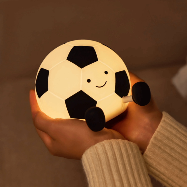 Silikonska lampa Fudbalska lopta savršen je izbor za sve male i velike ljubitelje fudbala koji žele praktičnu i dekorativnu LED noćnu lampu. Dizajnirana u obliku fudbalske lopte, ova lampa unosi sportsku energiju u dečiju sobu i pruža prijatno, nežno osvetljenje idealno za večernje sate.