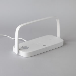 Postolje je od drveta, a sa utičnicom je povezuje USB kabl.