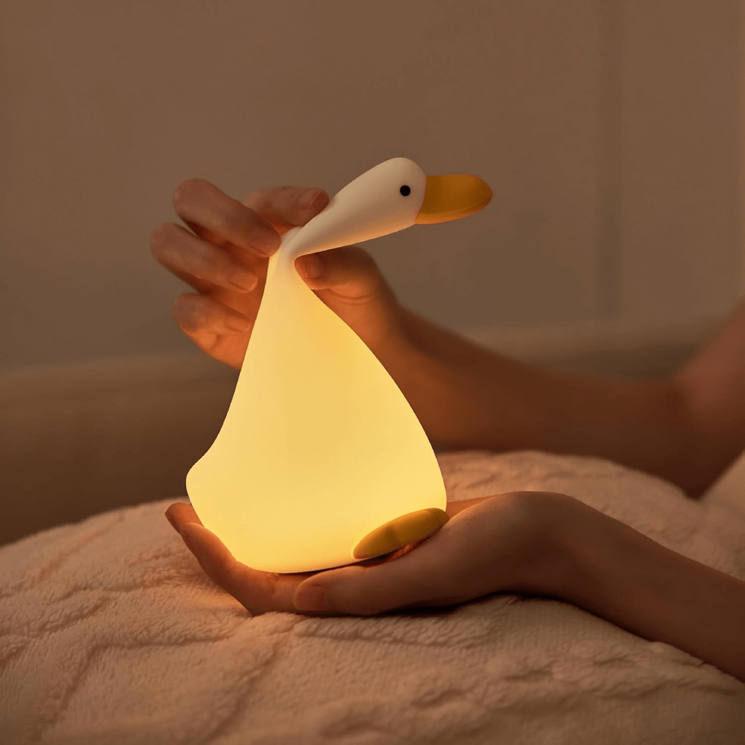 Silikonska lampa Zamišljena patka savršena je kao noćna lampa za dečiju sobu, ali i kao dekorativni detalj koji unosi toplinu u prostor. Zahvaljujući praktičnim funkcijama i sigurnim materijalima, predstavlja idealan poklon za rođendan, praznike ili posebne prilike. 🦆💛