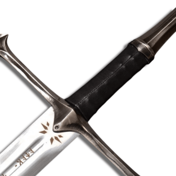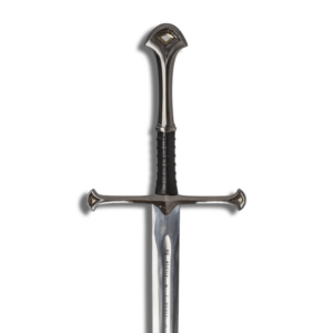 Anduril je legendarni mač Aragorna, naslednika trona Gondora, koji je nosio u borbi protiv mračnih sila Saurona. Ovaj mač je iskovan od delova Narsil-a, mača Elendila, i ima posebnu runsku inskripciju koja nosi snažnu poruku protiv Mordora. Simbol je Aragornove hrabrosti i prava na kraljevski tron.