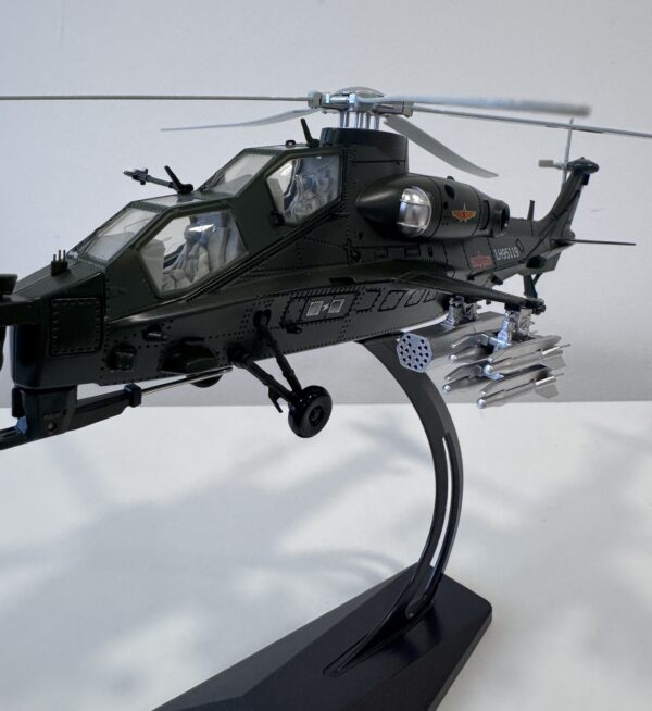 Ova detaljna maketa predstavlja repliku Changze Z-10, prvog kineskog naoružanog borbenog helikoptera. Izrađena u klasičnom retro stilu, maketa verno prikazuje karakterističan dizajn i robusnu siluetu originala, uz pažnju posvećenu svakom detalju.