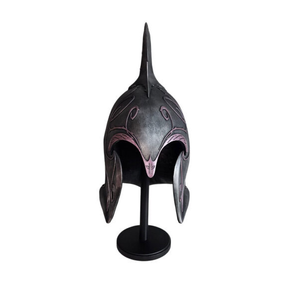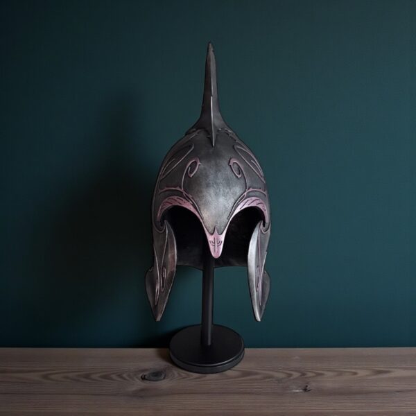 Impozantna replika Rivendell šlema inspirisana legendarnim dizajnom iz magičnog sveta koji svi poznajemo jako dobro, predstavlja pravi kolekcionarski komad. Izrađena od ojačanog polirezina, ovaj šlem odlikuje se bogatim detaljima, čvrstinom i autentičnim izgledom. Postavljena je na stabilno drveno postolje koje dodatno naglašava njen izložbeni karakter.