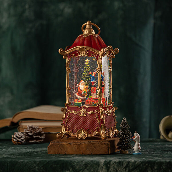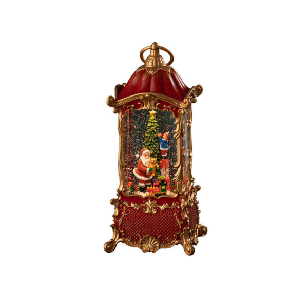 Ulepšajte svoj praznični prostor uz novogodišnji ukras Harmony, lantern crvene boje i zlatnih detalja koja unutar providnog okvira prikazuje toplu zimsku scenu sa Deda Mrazom, jelkom i poklonima.