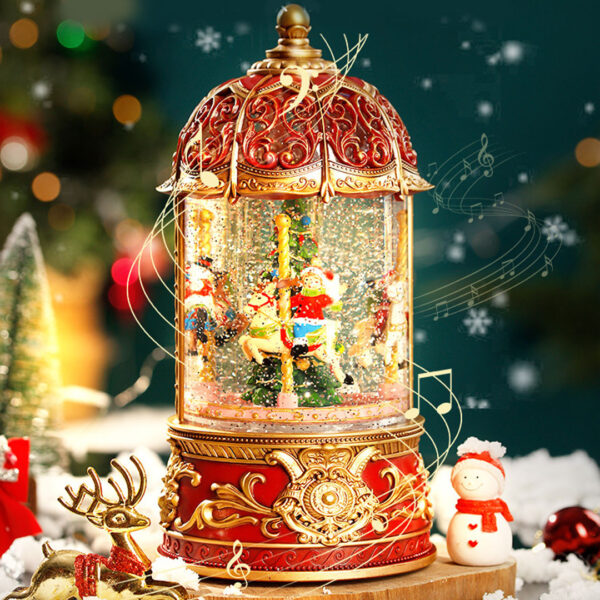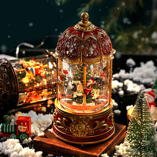 Novogodišnja Vrteška nudi savršenu kombinaciju pokreta, svetla šljokica i dodatne opcije muzike i samim tim stvara mali praznični spektakl koji uvek privlači pažnju – idealan ukras za poklon ili sopstveni praznični kutak.