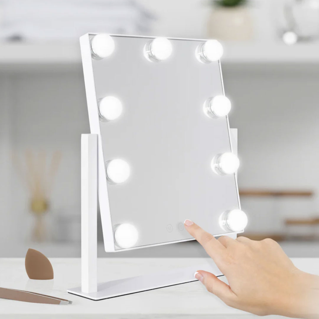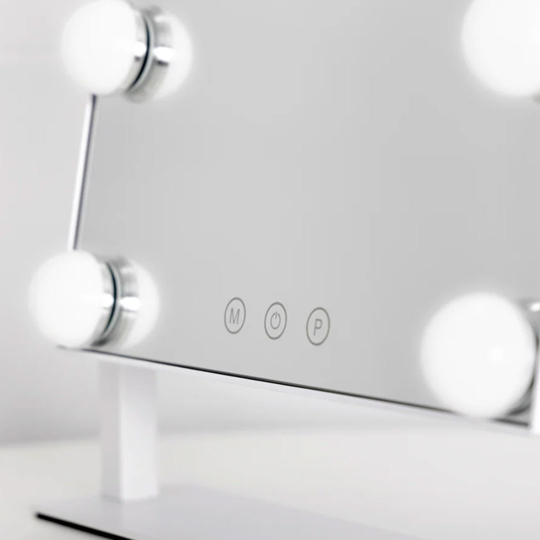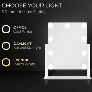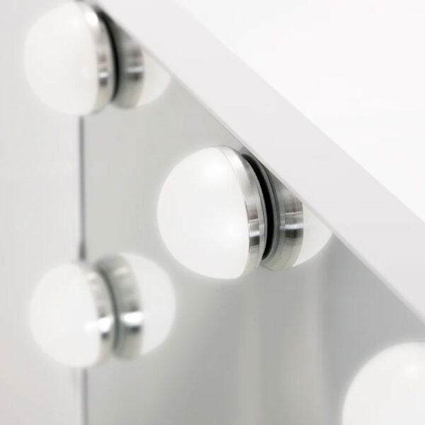 Ogledalo Hollywood 9 lampi predstavlja savršen izbor za profesionalno i svakodnevno šminkanje, pružajući jasno i ravnomerno osvetljenje bez izobličenja slike. Moderan beli metalni ram i elegantan dizajn čine ga idealnim dodatkom za toaletni sto, spavaću sobu ili kozmetički salon, dok tri režima osvetljenja omogućavaju prilagođavanje svetla svakoj prilici.