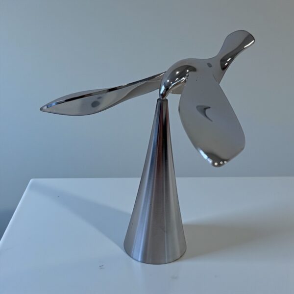 Ovaj jedinstveni balansirajući otvarač u obliku ptice spaja funkcionalnost i umetnički dizajn. Izrađen je od kvalitetnog mesinga sa poliranom, hromiranom završnom obradom, zahvaljujući čemu zadržava dugotrajan sjaj i otpornost na habanje.