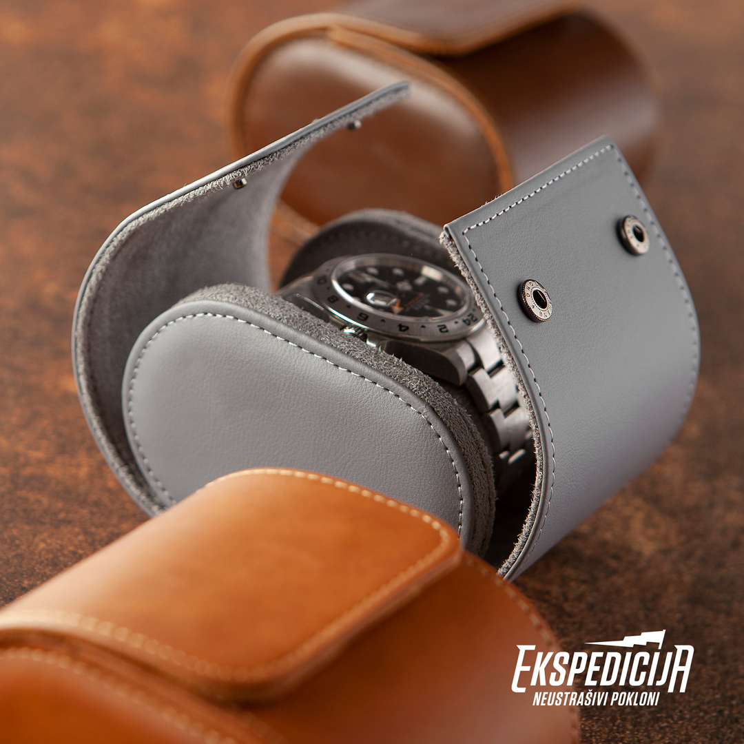 Najbolji način transporta tvog sata sa jednog mesta na drugo nije među garderobom, a još manje u pregradi torbe ili kofera. Najbolji način transporta tvog ručnog sata jeste u putnoj kutiji namenjenoj specijalno za ove, toliko voljene modne dodatke. Kutija za sat je čvrsta, što sprečava oštećenja sata prilikom pada ili udaraca. Unutrašnjost putne kutije obložena je mekim materijalom, koji sprečava ogrebotine koje mogu nastati trenjem kućišta sata o narukvicu. Pored efikasnosti, kutija osvaja i svojim izgledom. Obložena je kvalitetnom veštačkom kožom sive boje. Zatvaranje kutije je sa gornje strane, uz pomoć dva drikera.