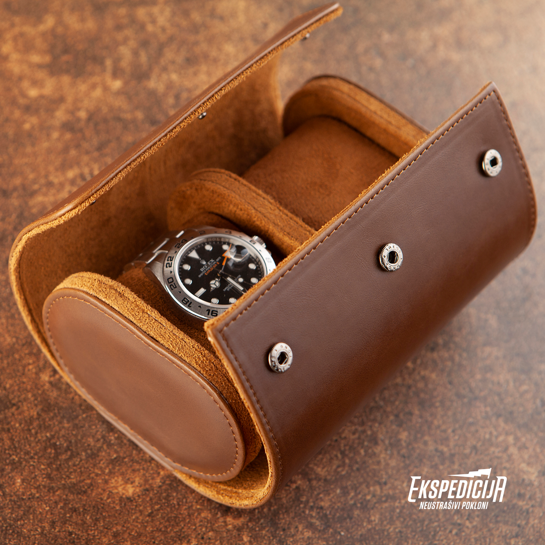 Ručnim satovima tokom putovanja je potrebna jednaka udobnost i bezbednost kao i tebi. Svojim ljubimcima to možeš obezbediti kupovinom putne kutije. Ova kutija vrhunskog kvaliteta i sofisticiranog izgleda je možda pravi izbor. Posebno ukoliko voliš stvari svedenog dizajna, jednostavne upotrebe, praktične i trajne. Kutija je spolja obložena veštačkom kožom. Unutrašnjost kutije obložena je mekim materijalom koji će sprečiti habanje satova. Da satovi ne bi ispali, zadužena su dva metalna drikera na poklopcu, u boji starog zlata.