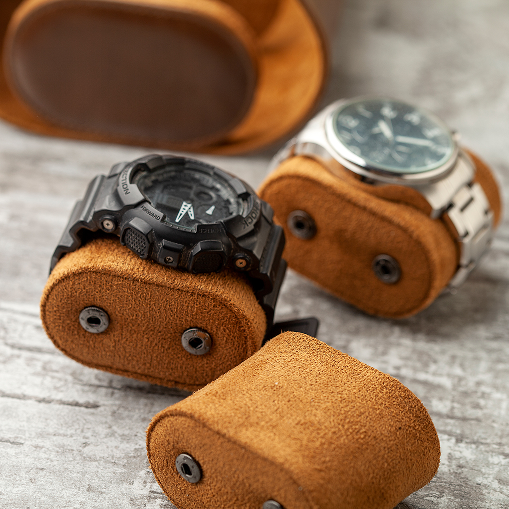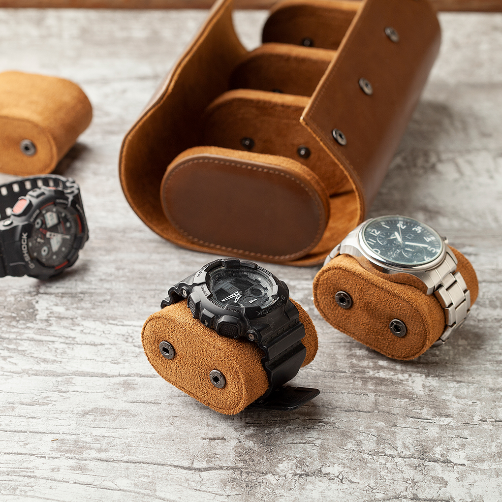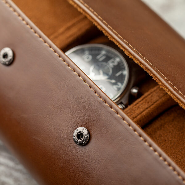 Putna kutija za ručne satove obložena je kvalitetnom smeđom veštačkom kožom. U putnoj kutiji za sat možete bezbedno transportovati 3 sata.
