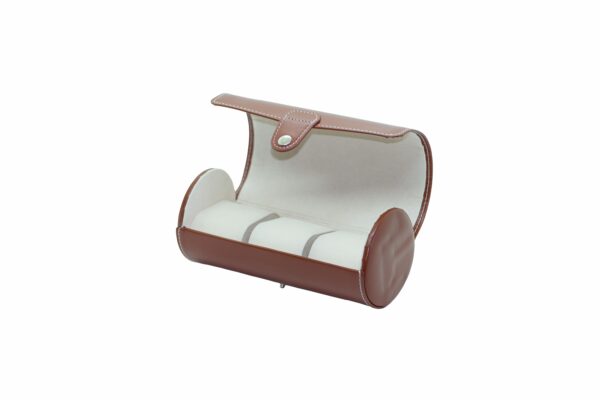 Kratko ili dugo putovanje, svejedno, svakako neće biti potpuno bez omiljenih modnih dodataka. Ručni satovi su često lični pečat, i upravo zbog ovolikog značaja i za njih je dizajniran specijalan ,,kofer“. Putna kutija za satove zauzima malo prostora, a značiće mnogo kada je zaštita satova u pitanju. Ovalnog je oblika i otvara se, odnosno zatvara uz pomoć jednog drikera. U ponudi su dve boje, smeđa i crna. Materijal kojim je kutija obložena spolja je kvalitetna veštačka koža. Unutrašnjost je prekrivena mekim belim materijalom kako bi se sprečio nastanak ogrebotina na satovima. U putnoj kutiji su tri jastučića, koje po potrebi možete vaditi. Kutija za ručne satove napravljena je od izdržljivog, čvrstog materijala, koji sprečava oštećenja satova.