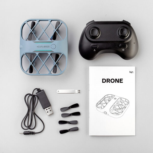 Dron za učenje namenjen je prevashodno deci, ali i starijima može biti odgovarajuća priprema za upravljanje složenijim dronom. Ova mini verzija drona ima tri brzine (sporo, srednje i brzo) ali zadovoljava potrebe vozača za različitim akrobacijama i okretanjem i do 360 stepeni. Osetljivost drona je visoka, kao i kontrola upravljanja. Pokreće ga izuzetno izdržljiva baterija, sa sistemom za opomenu kada je baterija pri praznjenju. Dizajn je osposobljen za različite nivoe letenja i minimalna oštećenja pri padu i udarcima. Mrežasti deo je takođe veoma otporan i čvrst. Dron je veoma lagan i samim tim lako prenosiv.