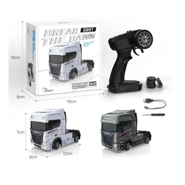 RC Gyro drift kamion u razmeri 1:43 donosi uzbudljivo iskustvo kontrolisanog driftovanja u kompaktnom formatu. Zahvaljujući pogonu na sva četiri točka (4WD) i ugrađenom žiroskopu, omogućava stabilnu vožnju, lakšu kontrolu i preciznu korekciju pravca tokom drifta.