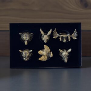 Unesite poseban šarm u svako druženje uz set lovačkih čašica za rakiju koje ostavljaju snažan utisak već na prvi pogled. Dno svake čašice krasi figura životinje koja, kad se čašica okrene da se sipa piće, služi kao stabilno i dekorativno postolje. Spoj stakla i mesinga daje im upečatljiv izgled.
