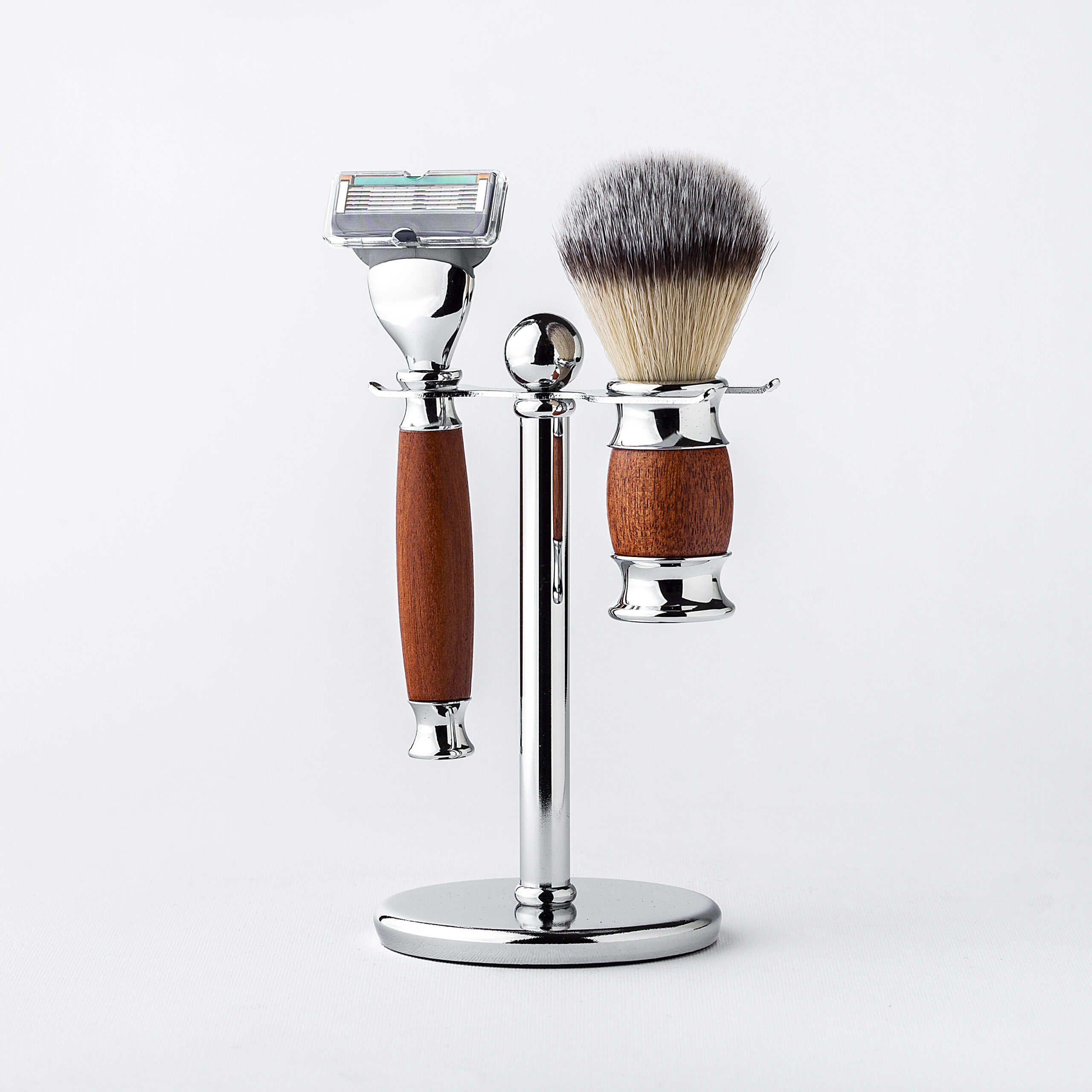 Ne zauzima mnogo prostora jer dolazi na elegantnom aluminijumskom stalku, žilet se nakon upotrebe brzo suši na njemu što smanjuje mogućnost razvoja mikro organizama. Pored stalka i brijača u setu za brijanje se nalazi i četka za nanošenje kreme za brijanje, koja je veoma nežna i prijatna za lice.
