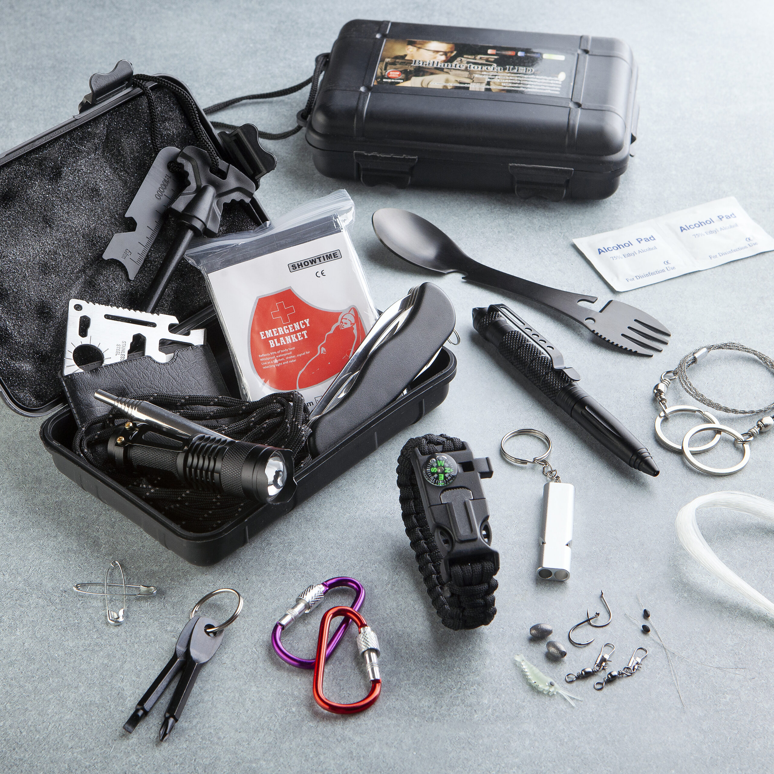 Set za preživljavanje Premium napravljen je po ugledu na one koje koriste vojnici. U ojačanoj kutiji crne boje nalaze se predmeti koji su neophodni za preživljavanje i samoodbranu. Ovaj set je multifunkcionalan i olakšava boravak u prirodi svima onima koji u njoj provode dosta vremena. Kompletan sadržaj seta je napravljen od izuzetno kvalitetnih materijala. Komplet za preživljavanje je lagan i malih dimenzija, te neće zauzeti puno prostora u torbi ili rancu.