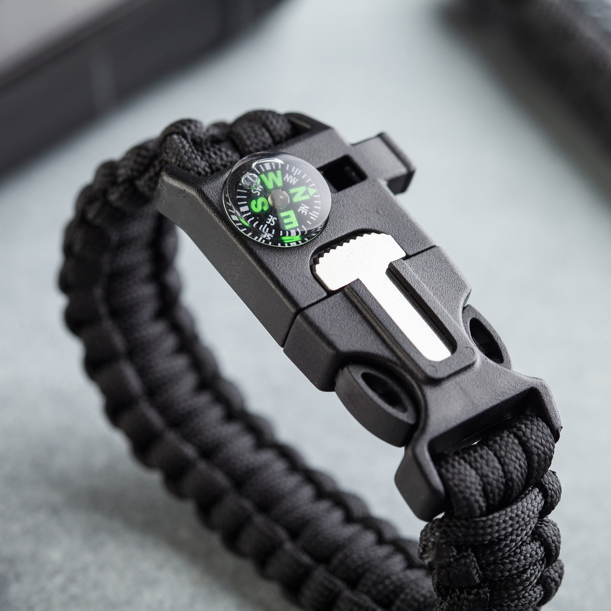 - Crna Paracord narukvica (kompas, kremen, kresivo, pištaljka)