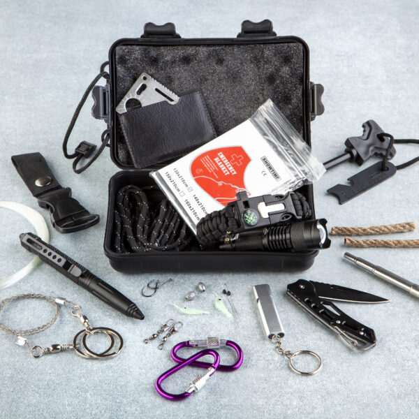 Nikada se ne zna kad ti mogu zatrebati baterijska lampa, sklopivi nož, kompas ili još 12 multifunkcionalnih predmeta. Namene ovih predmeta su takve da će ti značajno olakšati boravak u prirodi. Svi su smešteni u ojačanu crnu kutiju, odnosno set za preživljavanje Standard. Kutija je lagana i malih dimenzija, idealna za nošenje u rancu ili torbi. Komplet je napravljen po ugledu na one koje koriste vojnici i odličan je za poklon ljubiteljima prirode.