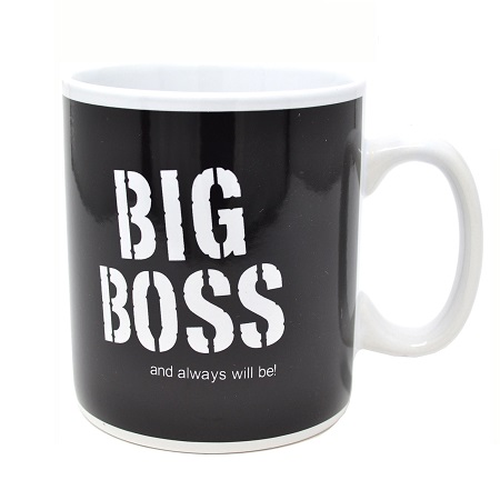 Izrađena od kvalitetne keramike ova šolja dolazi u crno-beloj boji sa natpisom Big Boss, većih je gabarita, pa je prevashodno namenjena onim „šefovima“ koji vole da uživaju u svom napitku, a bez da se brinu da li će im biti dovoljno. Zato, obradujte svog šefa, ili prijatelja koji je šef sa ovom šoljom i ne brinite da li ćete ostaviti dobar utisak.