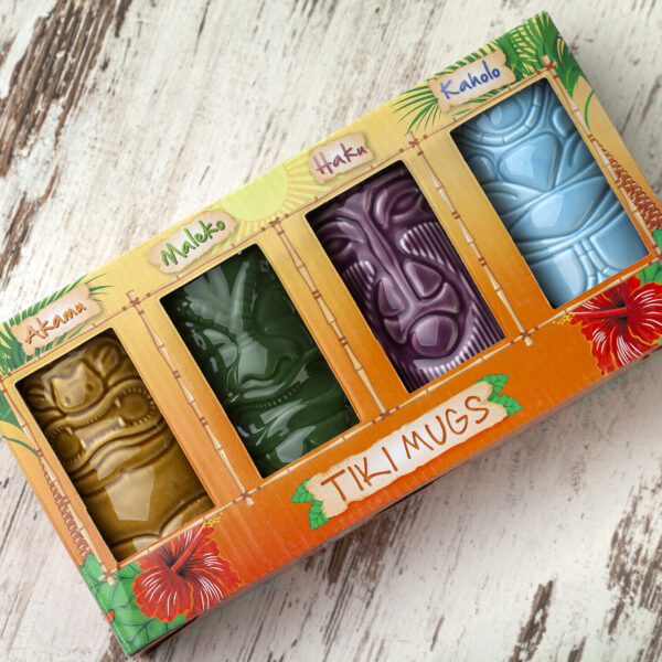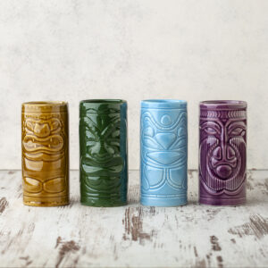 Tiki šolje su napravljene od keramike, obojene netoksičnim jarkim bojama. Inspirisane su Havajima i svaka ima svoje havajsko ime.