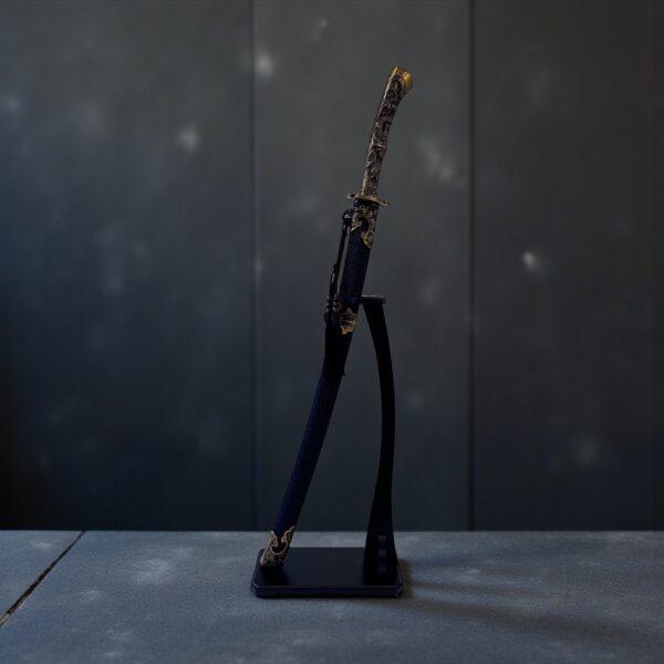 Ovaj vertikalni stalak za katanu omogućava elegantno i stabilno izlaganje mača u uspravnom položaju. Izrađen je od drveta u tamnoj boji, što mu daje klasičan i prefinjen izgled koji se lako uklapa u različite enterijere.