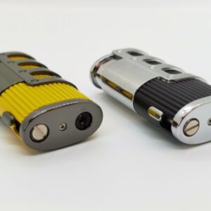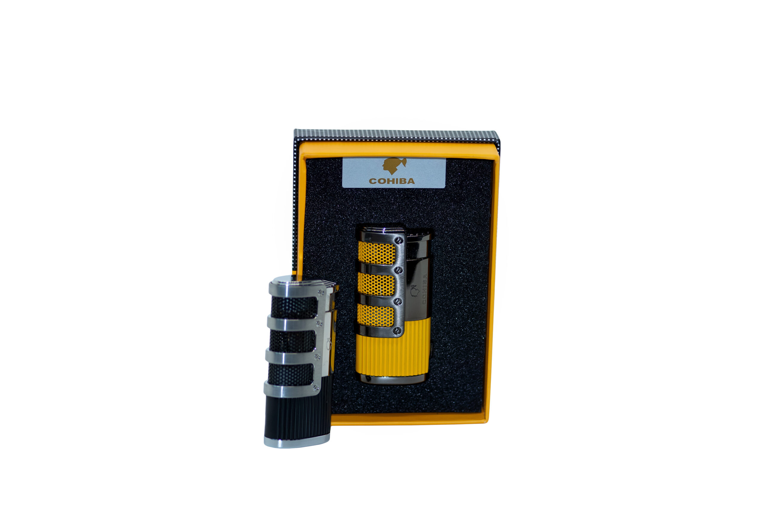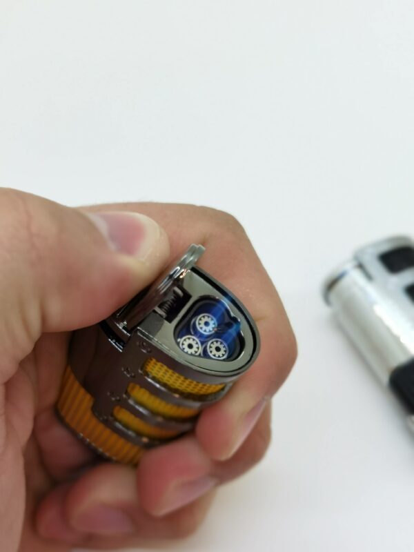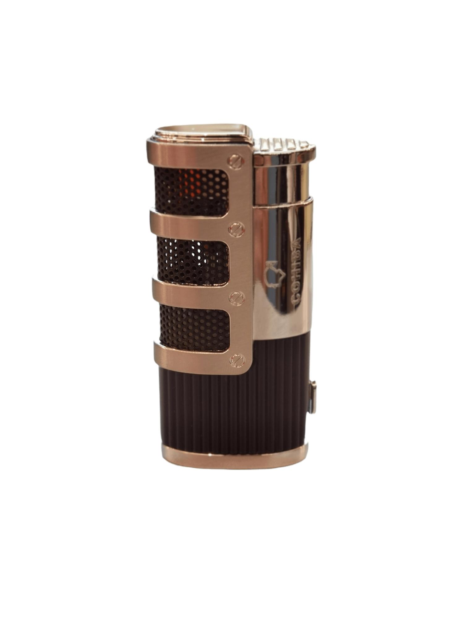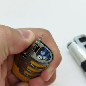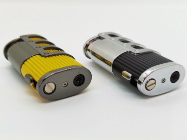 Metalni brener sa tri plamena koji ima sakriveni bušač.