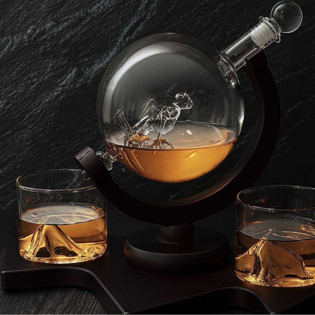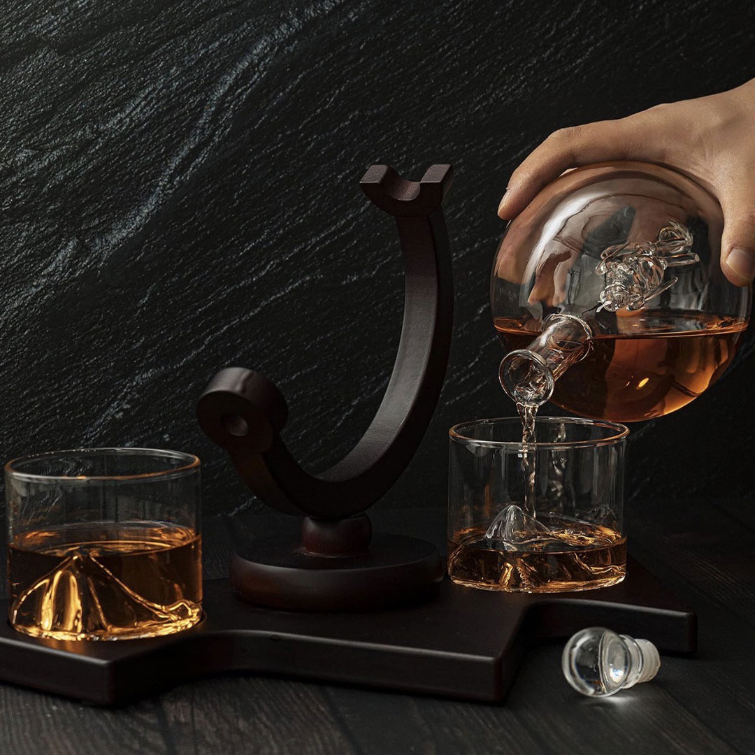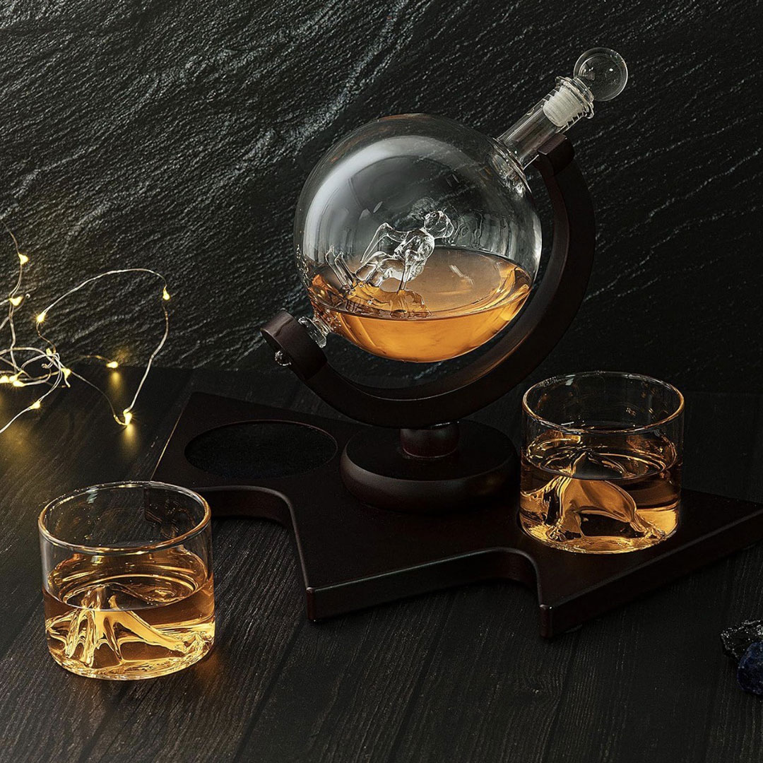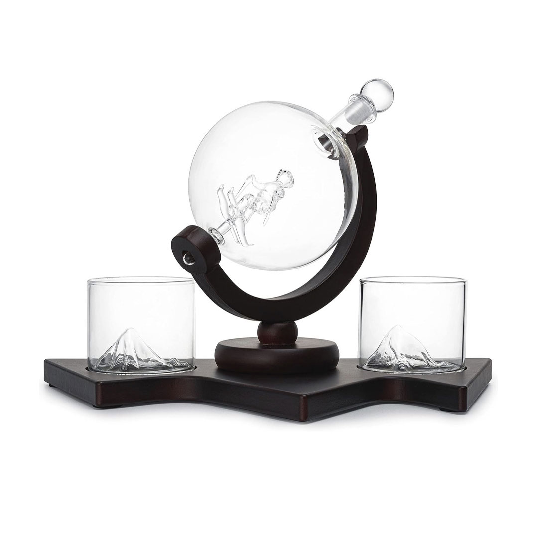 Dodajte originalan i elegantan detalj u vašu kolekciju pića uz Viski set Mountain. Centralni dekanter je u obliku globusa. Unutar kojeg se nalazi stakleni skijaš, dok dve čaše sadrže staklene planinske motive, stvarajući impresivan i jedinstven vizuelni efekat.