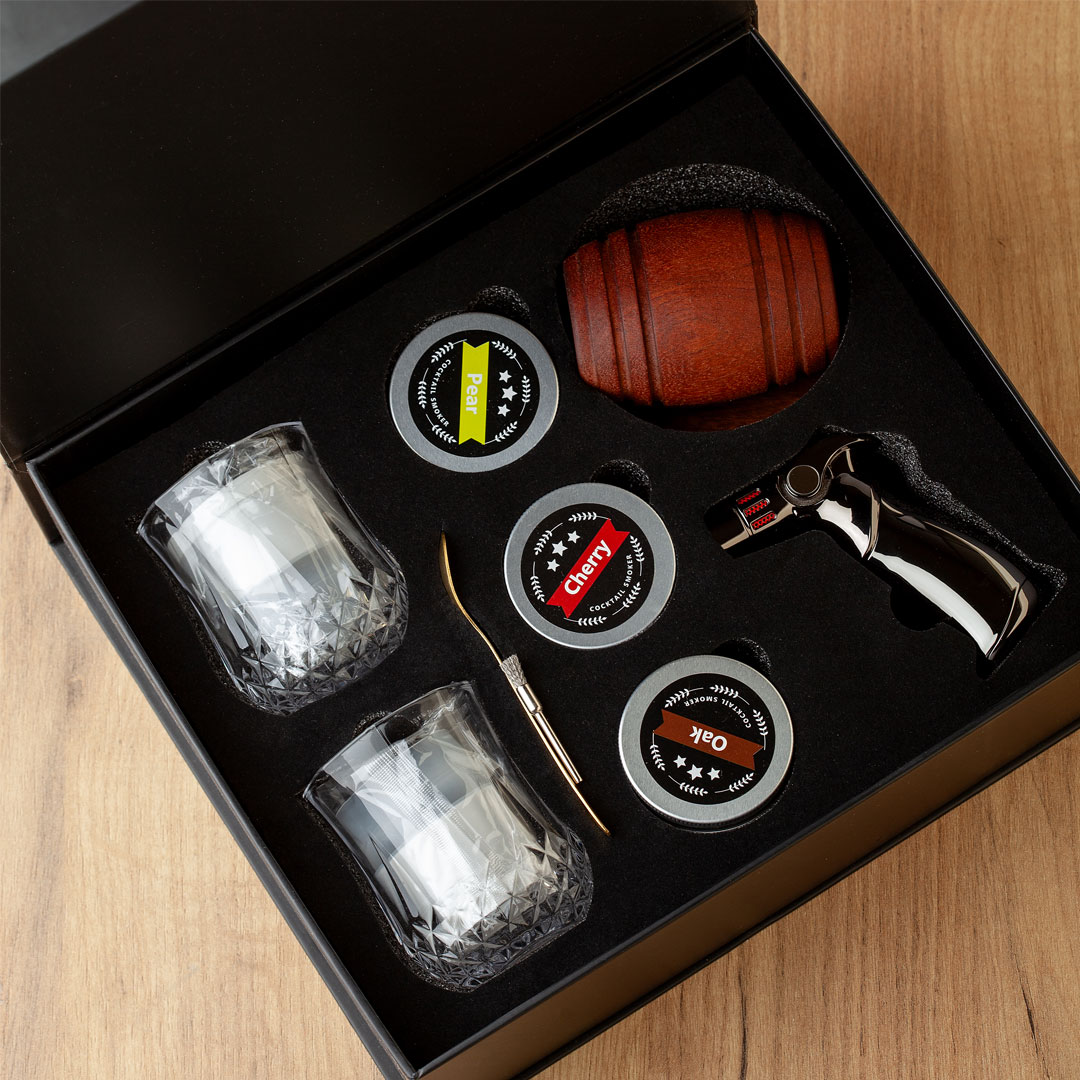 Korišćenje ovog seta je jednostavno i efektno: napunite komoru sa aromatizovanim ljuspicama drveta po izboru, upalite brener i pustite dim da ispuni čašu. Ovaj proces ne samo da obogaćuje ukus pića, već stvara i upečatljiv vizuelni efekat koji će oduševiti vaše goste.