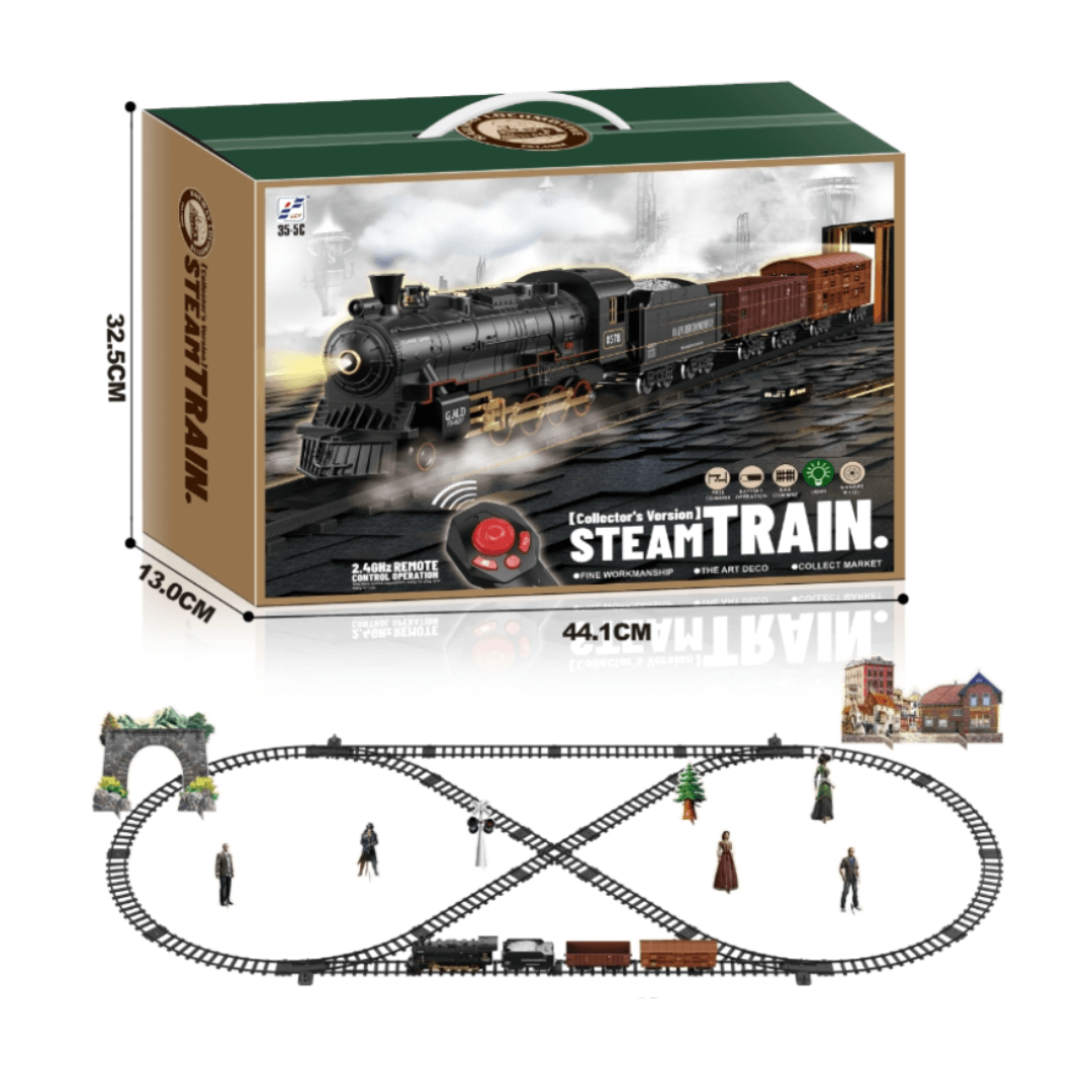 Premium RC teretni voz predstavlja izuzetno realističan model lokomotive namenjen svim ljubiteljima vozova i daljinski upravljanih modela. Zahvaljujući kvalitetnoj izradi od metalne legure i brojnim efektima koji oponašaju pravi voz, ovaj model pruža autentično iskustvo vožnje. Svetlosni i zvučni efekti, kao i funkcija pare, dodatno doprinose realističnom doživljaju tokom igre.