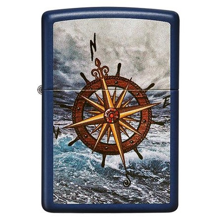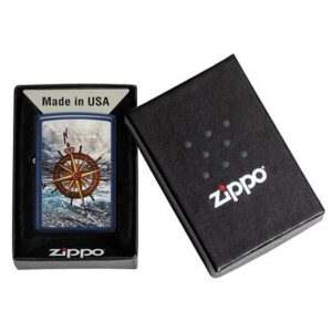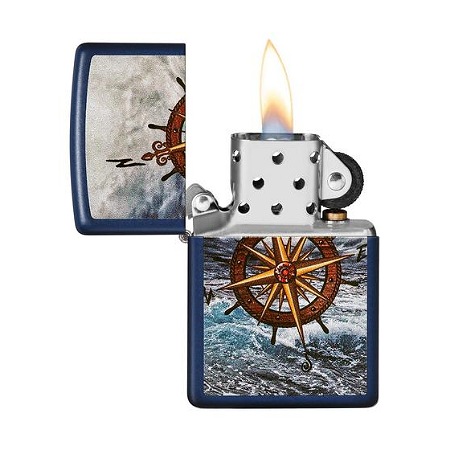 Zippo Compas Designe 49408 teget plave je boje, sa slikom mora i kompasa. Kompas nije samo navigacioni instrument za orijentaciju, već nosi i jaku simboliku. Ona između ostalog predstavlja važnost praćenja svojih snova, ne odustajanje, i nalaženje mirne luke. Ukoliko nekome želite da nađe svoj put, ovaj Zippo model je savršen poklon. Možda postane i amajlija.