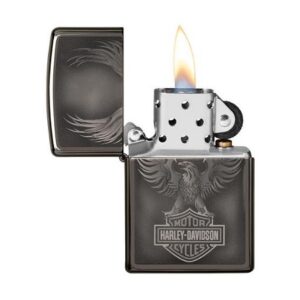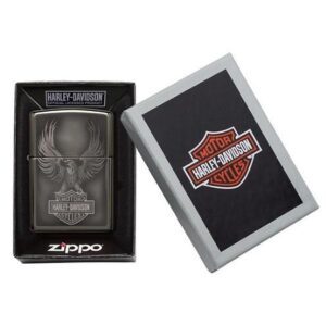 Pasionirani ljubitelji dvotočkaša Harley Davidson bili su inspiracija za nastanak modela Zippo Harley Davidson 49044. Prepoznatljiv moto logo je u podnožju metalne kutije, a ,,drži“ ga orao raširenih krila. Ovaj moćni detalj neka Vas ili nekog Vama dragog podseća na slobodu i bezvremenost.